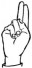 На ћирилици написано БУДИМИР РАДОЈЕВИЋ састоји се из 16 слова [?]. Исписано ћириличном једноручном азбуком за глувонеме: